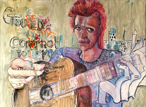 The funny thing about this Ziggy Stardust painting is that I changed the words.  The first words  “Goodbye my pleaser, Goodbye!”  incapsulated my desire to get rid of my people pleasing persona.  Changing them to “Ground Control to maj…”  is ironic as I thought it would make more sense and more people would like it.